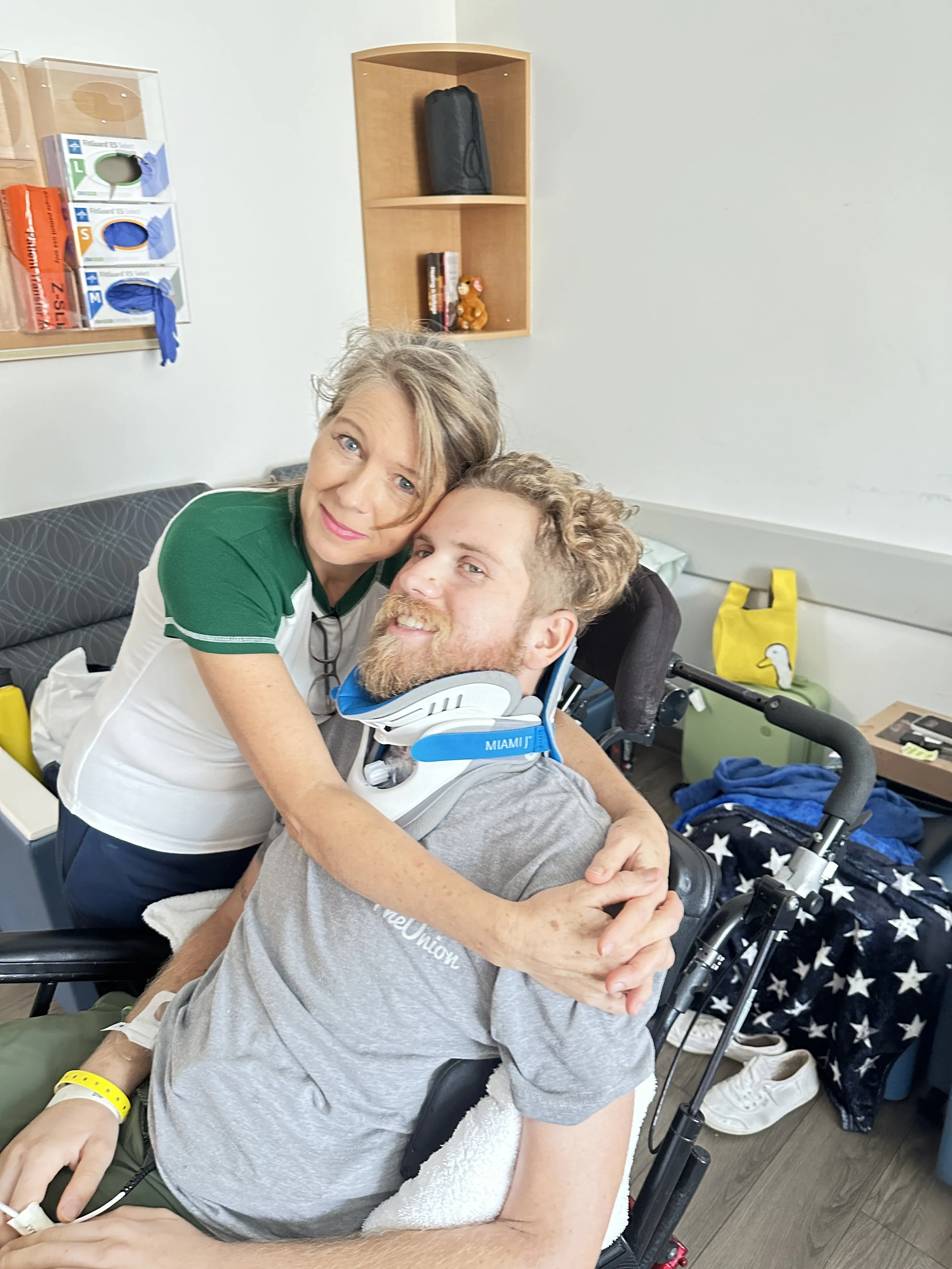 Ellis has zero brain damage and can now talk and breathe freely. He’s regaining sensation in his body every day (he can shrug his shoulders, tilt his head, sometimes lift his right arm), but damaged nerves regenerate very slowly, and he still needs help for all essential things—eating, drinking, showering, bathroom, getting outside, etc.
